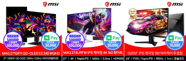 한편, MSI는 할인 혜택과 더불어 제품에 따라 최대 3만원 네이버 페이 상품권 증정 이벤트와 10만원 스팀월렛 증정 이벤트를 진행하여 할인 혜택의 폭을 대폭 넓혔다.