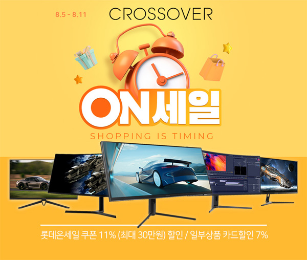 크로스오버는 자사의 인기 모니터 105종을 대상으로 롯데온 2024년 8월 온세일 특가 할인전을 진행한다고 밝혔다.