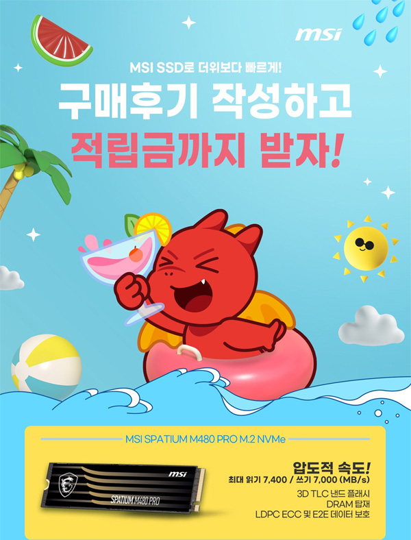 MSI는 전자제품 종합 쇼핑몰 ‘컴퓨존’에서 MSI SSD를 구매한 고객을 대상으로 구매 후기 이벤트를 진행한다고 밝혔다.