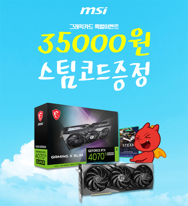 MSI는 자사의 그래픽카드를 구매한 고객들에게 스팀 월렛 35,000원 코드를 증정하는 행사를 진행한다.
