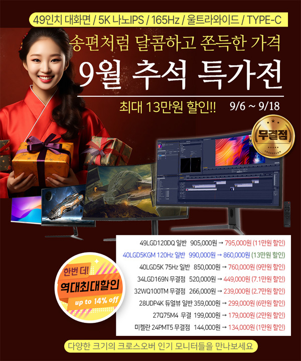 49LGD120DQ 무결점 995,000원 → 895,000원 (10만원 할인)