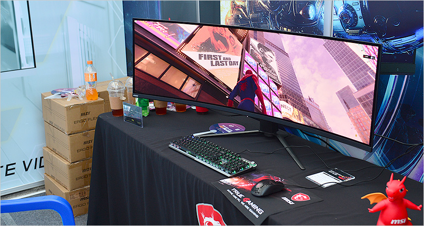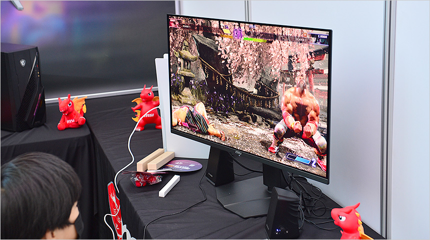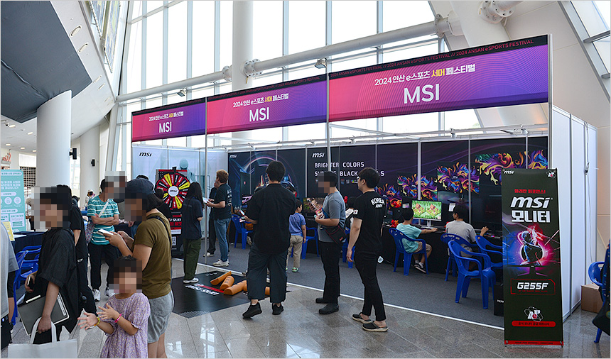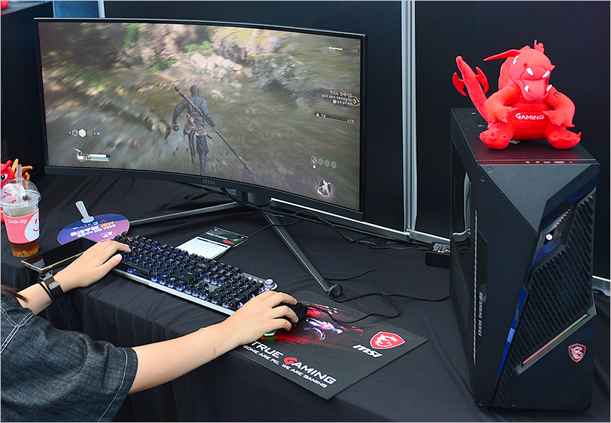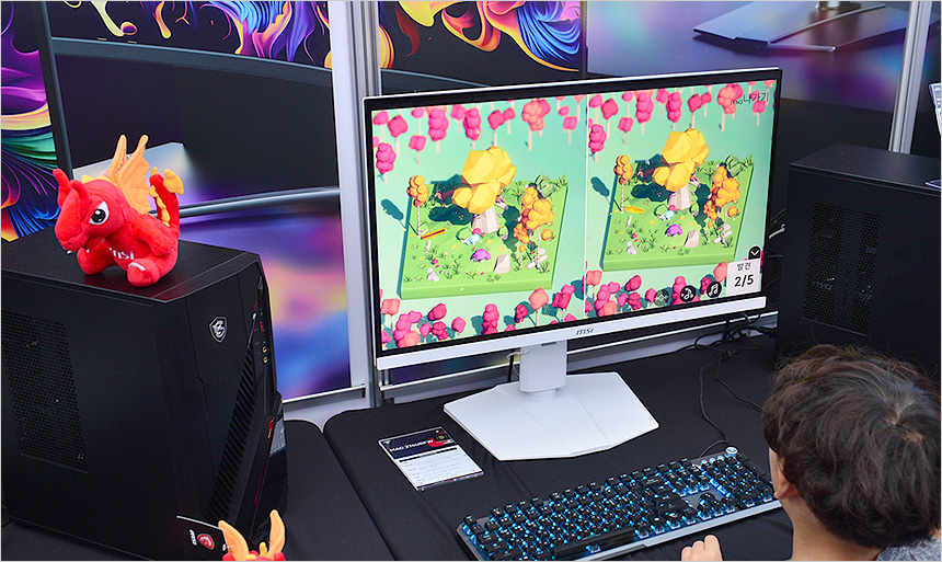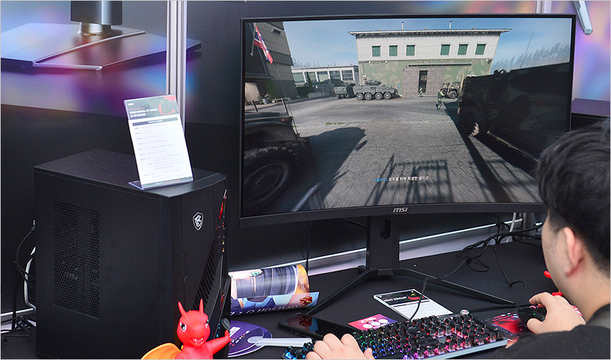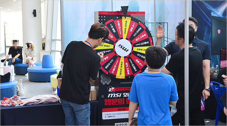 MSI 에서는 행사를 통해 게이밍 모니터를 체험할 수 있는 MSI 부스를 운영했다. 출시되고 있는 다양한 게이밍 모니터를 직접 사용해 볼 수 있을 뿐만 아니라 다양한 이벤트를 통해 귀여운 MSI 용용이 인형부터 라이트바 모니터 조명, 모니터 암 등 8만원 상당의 경품을 증정했다.