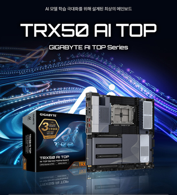 제이씨현시스템은 AMD 라이젠 스레드리퍼 프로세서를 지원하는 GIGABYTE TRX50 Ai TOP 메인보드 제품을 공식 출시한다.
