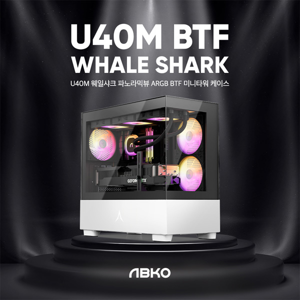 앱코에서 120mm 리버스 팬을 포함한 3개 쿨러를 기본 제공하는 4만원대 파노라믹 뷰 M-ATX 미니타워 BTF 어항 케이스, ‘U40M 웨일샤크’를 출시한다.