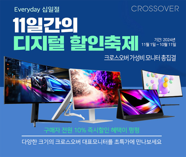 크로스오버는 자사의 인기 게이밍 및 고해상도 모니터 113종을 대상으로 11번가 2024년 11월 에브리데이 십일절 이벤트를 진행한다고 밝혔다.