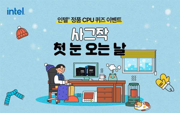 인텔 공인대리점 3사가 다가오는 겨울을 맞이해 ‘첫 눈 오는날’ 인텔 정품 CPU 퀴즈 프로모션을 실시한다.