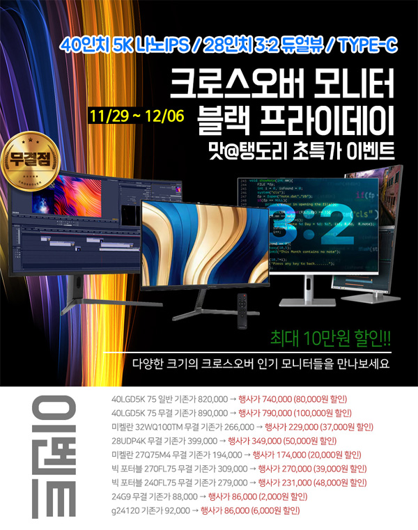크로스오버, 인기 모니터 대상 2024 블랙 프라이데이 맛@탱도리 특가전 진행