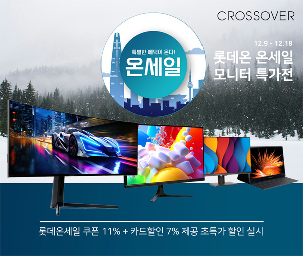 크로스오버는 자사의 인기 모니터 55종을 대상으로 롯데온 2024년 12월 온세일 특가 할인전을 진행한다고 밝혔다.