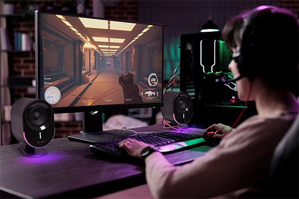 캔스톤이 2채널 북쉘프 디자인의 신제품 캔스톤 F1BT 블루투스 RGB 스피커를 출시한다.