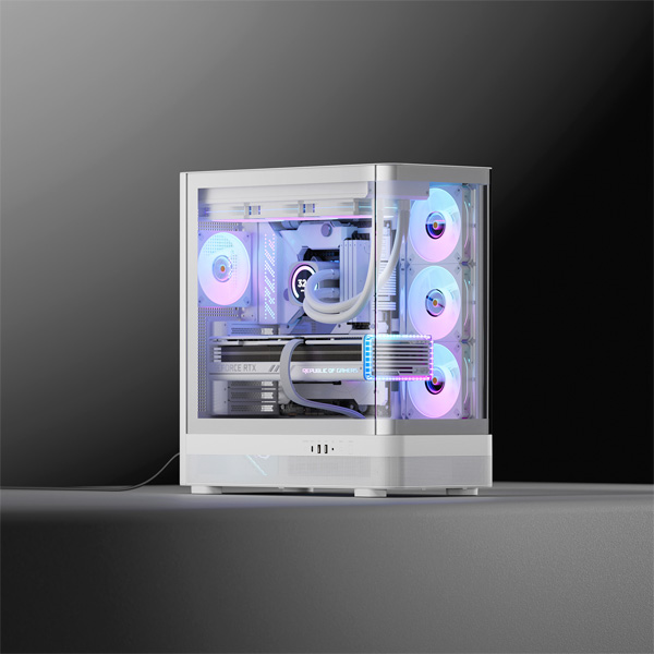 ‘EDGE CV-Z9’ 역시 어항 케이스로, 4면 곡면 디자인이 돋보이는 제품이다. 직육면체의 일관된 PC 케이스 통념을 깨고 매끄러운 마감과 부드럽고 우아한 곡선을 구현했다. 과거에도 곡면을 적용한 제품이 출시된 적이 있지만 곡면 구조가 적용되면서 전면과 측면이 하나로 연결돼 조립이 불편하다는 의견이 있었다. ‘EDGE CV-Z9’은 측면과 전면이 분리된 구조로 측면 패널을 개방할 수 있어 기존의 불편함 없이 사용할 수 있다.