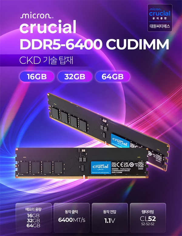 대원씨티에스, 마이크론 Crucial DDR5-6400 CUDIMM 메모리 출시
