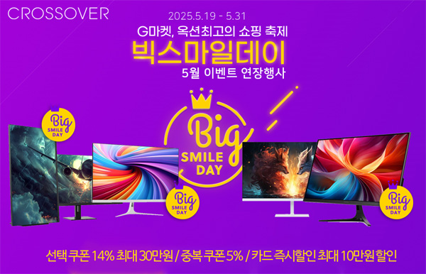 크로스오버는 자사의 인기 포터블, 게이밍, 고해상도 모니터들을 대상으로 옥션 지마켓 5월 빅스마일데이 연장을 실시한다.