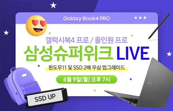 유니씨앤씨는 최신 인텔 코어 울트라 시리즈 2와 WQXGA+ Dynamic AMOLED 2X 터치스크린을 탑재한 삼성 갤럭시북5 프로 신모델과 갤럭시북4 프로, 올인원 프로 대상으로 최대 57만원 할인 혜택과 최대 12개월 무이자 할부, 윈도우 11 무상 탑재, SSD 더블업, 한컴 오피스, 무선 키보드 & 무선 마우스 등 푸짐한 사은품이 증정되는 ‘삼성슈퍼위크’ 라이브 방송을 2025년 6월 9일 19시부터 단 1시간 동안 스마트스토어를 통하여 진행한다.