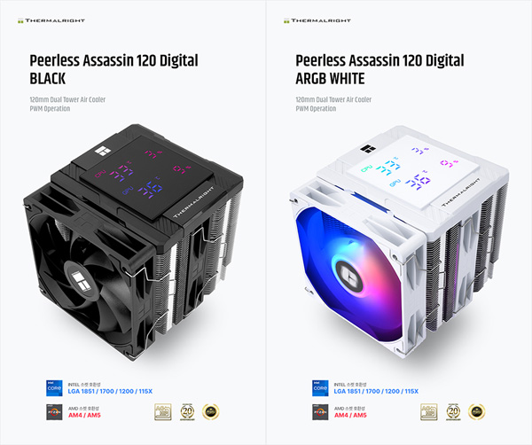 서린씨앤아이가 서멀라이트의 신규 CPU 쿨러, 피어레스 어쌔씬(Peerless Assassin) 120 디지털(Digital) 시리즈를 정식 출시했다.