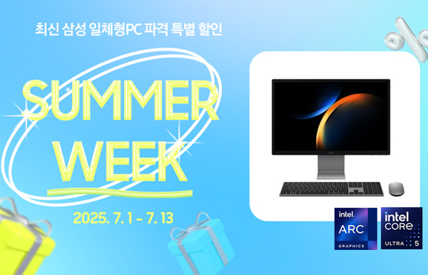 유니씨앤씨는 27인치 4K 대화면과 강력한 AI 퍼포먼스의 프로세스를 탑재한 삼성전자 올인원 프로 DM970AGA-L51A 대상으로 최대 30만원 할인과 삼성 무선 키보드 & 마우스, 다양한 제휴 혜택 등의 사은품이 증정되는 ‘갤럭시 위크’ 프로모션을 2025년 7월 1일부터 7월 13일까지 오늘의집을 통해 진행한다.