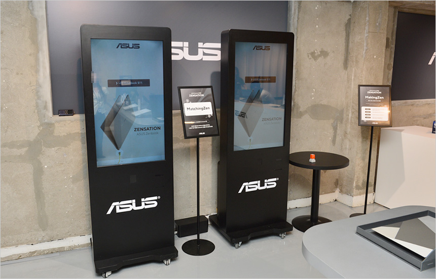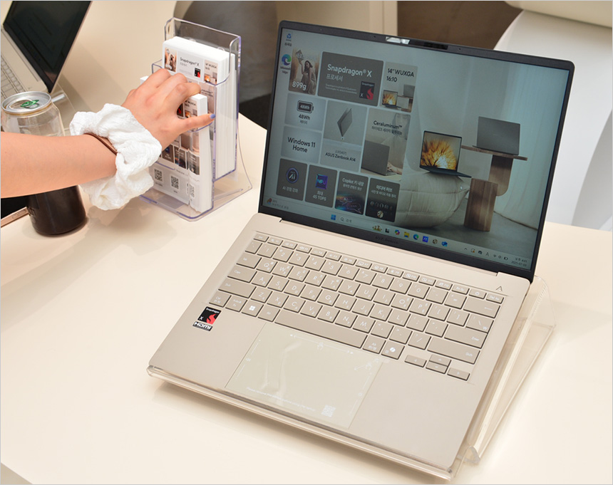 일층에는 스냅드래곤이 탑재된 젠북 A14 모델이 전시되어 있고 관람객들이 제품의 특징과 장점등을 손쉽게 알 수 있도록 다양한 정보를 제공한다.