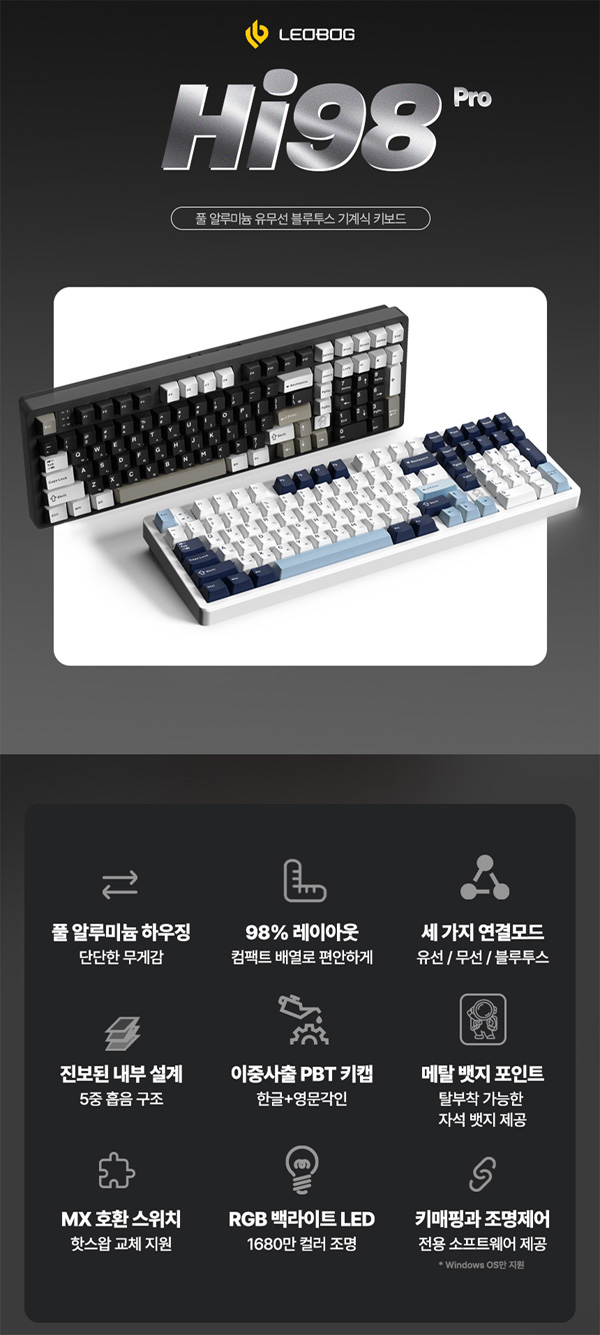 펀키스에서 키보드 전문 글로벌 브랜드 LEOBOG by AULA의 풀알루미늄 하우징 유무선 기계식 키보드 Hi98Pro 시리즈 신규 출시한다.