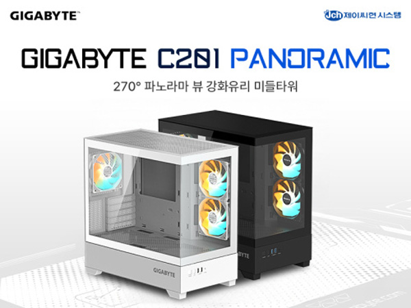 제이씨현시스템은 2025년 7월 15일, 270도 파노라마 뷰가 적용된 새로운 미들타워 PC 케이스인 기가바이트 C201 PANORAMIC (ICE) 제품을 출시한다.