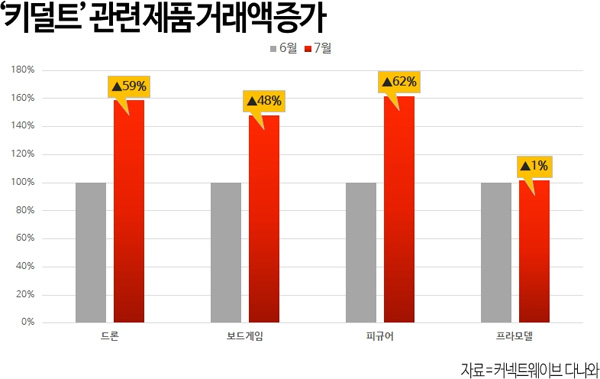 특히 드론(59%)이 관련 카테고리의 성장을 견인하며 전체 거래액 상승을 이끈 가운데 세부 품목별로는 보드게임이 전월 대비 48%, 피규어가 62% 증가해 높은 성장세를 기록했다