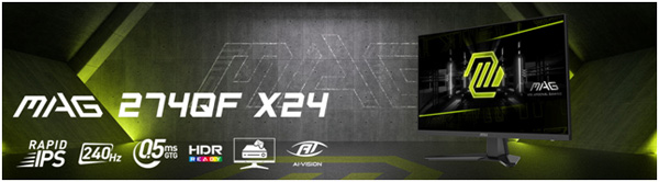 MSI는 일반 IPS보다 한층 빠른 반응 속도를 자랑하는Rapid IPS WQHD 패널과 최대 240hz 초고주사율을 갖춘 27인치 신제품 게이밍 모니터 ‘MAG 274QF X24‘을 출시했다고 밝혔다.