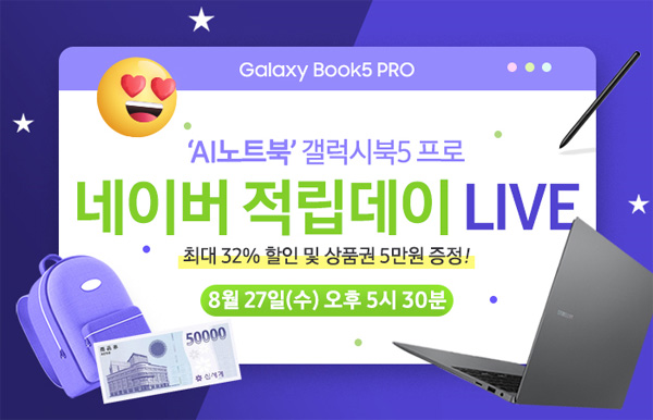 유니씨앤씨는 최신 인텔 코어 울트라 시리즈 2와 WQXGA+ Dynamic AMOLED 2X 터치스크린을 탑재한 삼성 갤럭시북5 프로 / 프로360 대상으로 선착순 강세일 쿠폰 할인 포함, 최대 74만원 할인 혜택과 최대 12개월 무이자 할부, 신세계 상품권, SSD 업그레이드 혜택, 한컴 오피스 등 푸짐한 사은품이 증정되는 ‘적립Day LIVE’ 방송을 2025년 8월 27일 17시 30분부터 단 1시간 동안 스마트스토어를 통하여 진행한다.