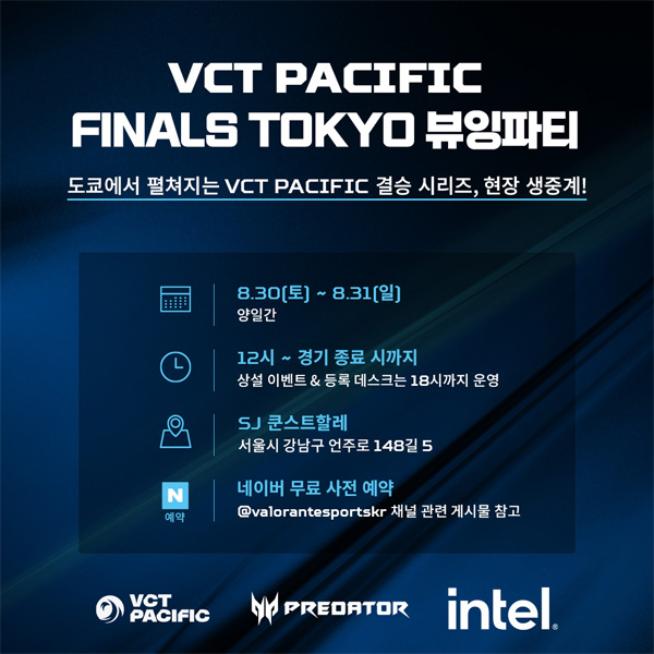 에이서의 고성능 게이밍 브랜드인 프레데터는 라이엇 게임즈의 글로벌 e스포츠 리그 ‘VCT 퍼시픽’ 공식 파트너로, 대회 현장에 사용되는 게이밍 PC와 중계용 노트북을 독점 지원한다. 이번 뷰잉파티에서는 도쿄에서 열리는 VCT 퍼시픽 스테이지 2 결승 시리즈가 생중계되며, 현장을 찾은 팬들이 함께 응원하고 소통할 수 있는 다양한 프로그램이 마련된다. 뷰잉파티는 매일 오후 12시부터 경기 종료 시까지 운영되며, 상설 이벤트와 등록 데스크는 오후 6시까지 운영된다.