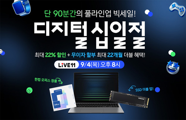 유니씨앤씨는 최신 인텔 코어울트라시리즈2프로세서와 WQXGA+ Dynamic AMOLED 2X 터치스크린을 탑재한 삼성 갤럭시북5 프로 NT960XHA-K52A와 NT965XHW-A51A 대상으로 최대 52만원 할인과 최대 22개월 무이자 할부, SSD 업그레이드 혜택, 한컴 오피스, 신세계 상품권 등의 푸짐한 사은품이 증정되는 ‘갤럭시 풀라인업 빅세일’ 라이브 방송을 2025년 9월 4일 20시부터 단 90분 동안, 11번가를 통해 진행한다.