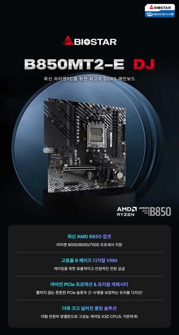 제이씨현시스템은 AMD 라이젠 PC를 위한 합리적인 B850 메인보드, 바이오스타 B850MT2-E DJ를 공식 출시한다.