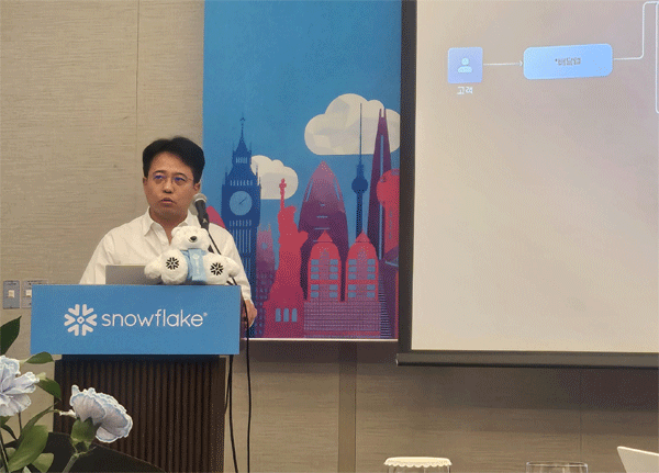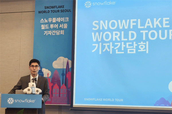 기자 간담회에서 스노우플레이크 코리아 최기영 지사장은 스노우플레이크 월드 투어 서울 소개 및 비즈니스 전략을 발표했다.