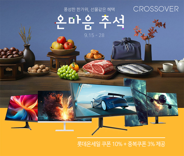 크로스오버는 자사의 인기 모니터 80종을 대상으로 롯데온 2025년 9월 온마음추석&갓생쇼핑 프로모션 할인전을 진행한다고 밝혔다.?