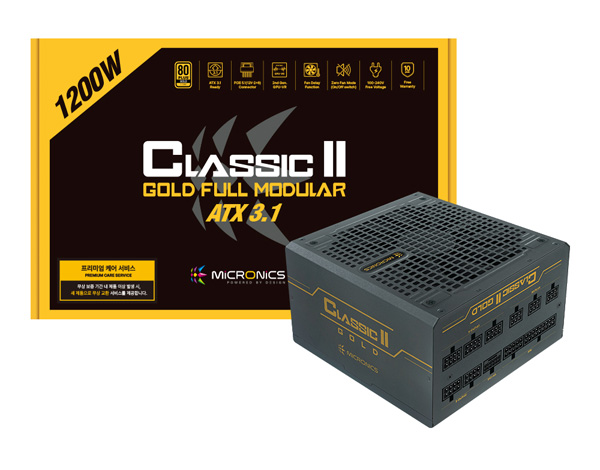 마이크로닉스가 ATX 3.1 규격과 PCIe 5.1을 지원하는 고출력 파워서플라이 ‘마이크로닉스 Classic II 1200W 80PLUS 골드 풀모듈러 ATX 3.1(이하 클래식 II 골드 1200W ATX 3.1)’을 공식 출시했다.