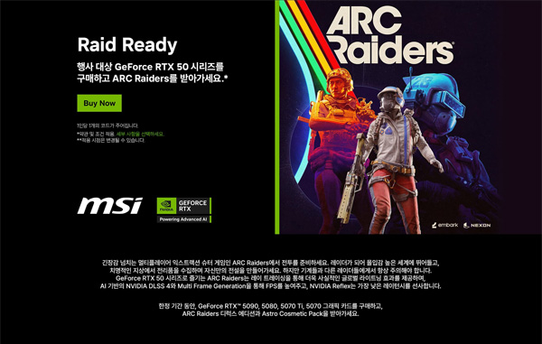 MSI는 MSI의 최신 그래픽카드 제품인 ‘MSI 지포스 RTX™ 50 시리즈’ 구매 고객을 대상으로, 기대 신작 ‘아크 레이더스(ARC Raiders)’를 증정하는 특별 이벤트를 진행한다고 밝혔다.