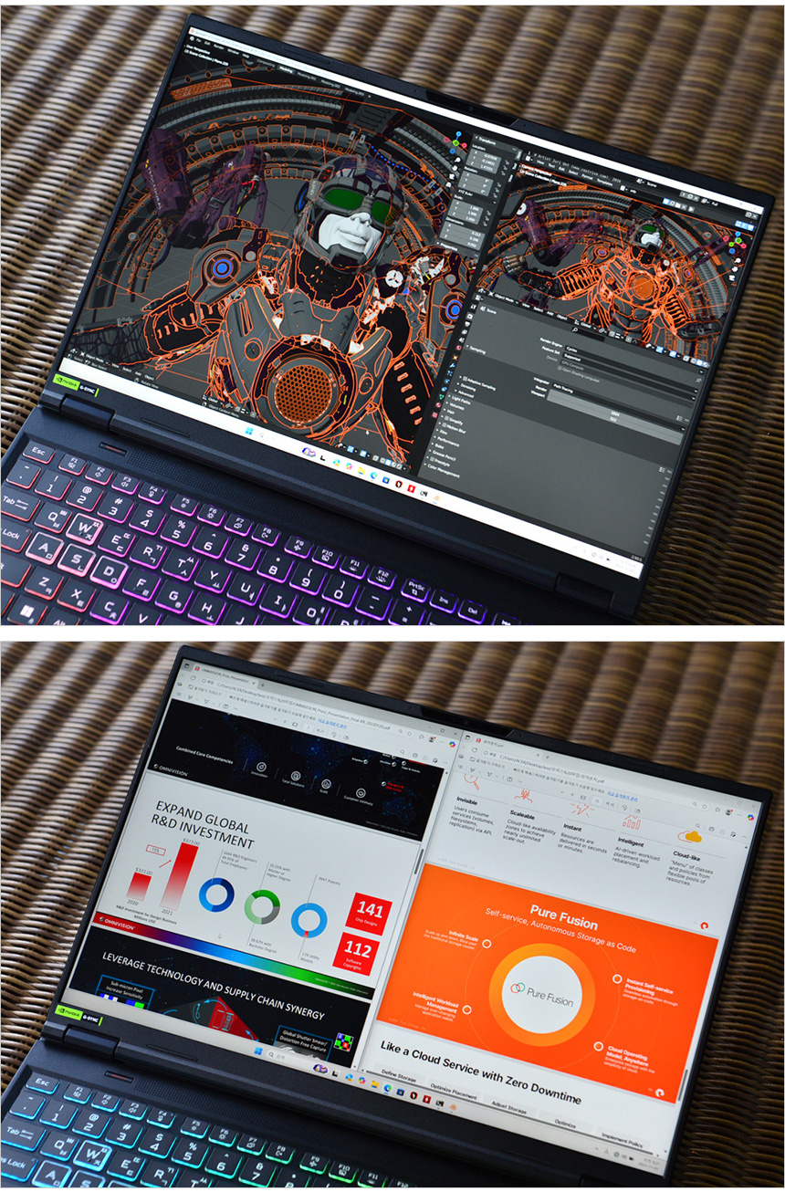 디테일이 살아있는 선명한 디스플레이 탑재도 장점이라 할 수 있다. 180Hz 주사율을 지원해 작은 차이도 구분할 수 있는 FPS 게이머 들이 부드럽게 게임을 즐길 수 있으며 16형 대화면 지원으로 탁 트인 시원한 영상을 즐길 수 있다. 또한 300nits 의 높은 밝기를 지원해 야외에서도 높은 시인성을 경험할 수 있었으며 16:10 비율 지원으로 작업을 편하게 실행할 수 있었다.