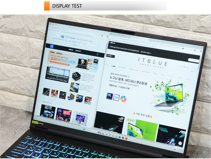 고급형 게이밍 노트북 다운 화려한 스펙이 인상적이었다. 이번에는 지원 기능을 살펴보고 다양한 테스트를 통해 성능을 확인해 보도록 하자. @ 이 제품은 Free DOS 모델로 임의로 윈도우 11을 설치해 테스트를 진행했다. 이점 참조 바란다.