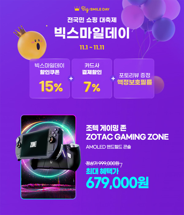 라이프웍스가 ‘빅스마일데이’를 통해 프리미엄 게이밍 핸드헬드 UMPC인 조텍 게이밍 존(ZOTAC GAMING ZONE) 프로모션 소식을 전했다.