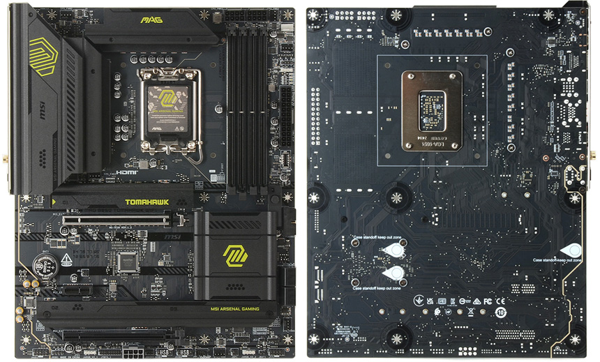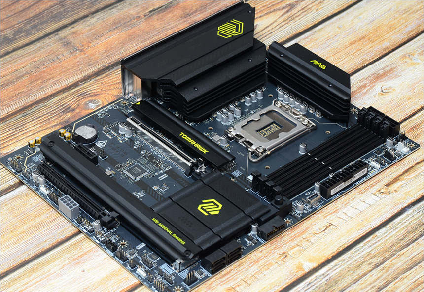 메인보드의 디자인은 기존 토마호크 시리즈와 같이 깔끔하고 고급스럽다. 각종 슬롯이 일목요연 하게 배치되어 있으며 넉넉한 여유공간으로 그래픽카드나 쿨러 등을 장착할 때 간섭을 최소화 했다. 특히 히트싱크나 기판등 대부분의 부품에 블랙 컬러를 적용했을 뿐만 아니라 마감 완성도도 뛰어나 고급스러운 느낌을 자아낸다. (다소 썰렁해 보이는 보급형 모델들과는 확연히 다른 모습을 보여주었다.)
