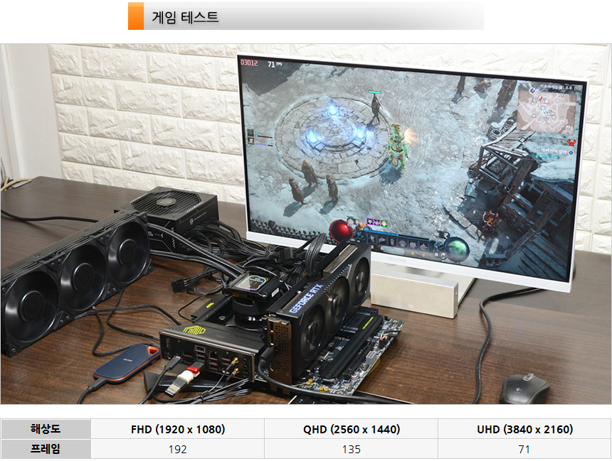 디아블로 4를 이용해 프레임 테스트를 진행한 모습으로 (키오바샤드에서 측정) 프레임이 상당히 높은 것을 확인할 수 있었다. 해상도나 옵션에 관계없이 부드럽게 게임을 즐길 수 있다.