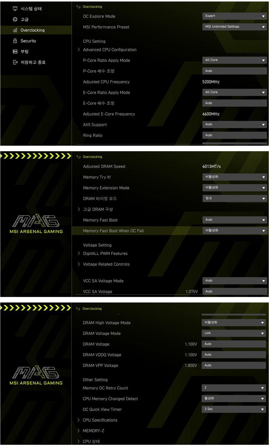 디테일한 오버클럭 설정이 가능한 것을 확인할 수 있다. 메모리 오버클럭 설정이 가능해 기본 메모리를 사용하고 있는 유저들도 손쉽게 메모리 성능을 높일 수 있다.