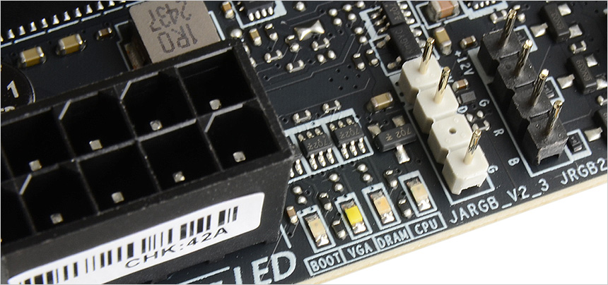 스피커 비프음으로 PC의 이상현상을 감지해야 하는 구형 PC와 달리 DEBUG LED가 부착되어 부팅시 발생되는 이상증상을 바로 파악할 수 있으며 (전원 버튼을 누르면 차례대로 불이 켜지며 이상 유무를 알려준다. 부팅이 되지 않거나 오버클럭 등으로 PC상태를 확인해야 할 경우 무척 유용하다.)