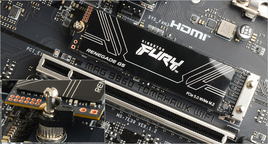 3개의 M.2 슬롯을 지원해 여유롭게 저장장치를 추가할 수 있다. 첫 번째 M.2 슬롯에는 M.2 쉴드 프로저가 장착되어 (밀착력을 높이기 위해 써멀패드도 부착되어 있다.) 열이 많은 PCIe NVMe SSD의 열을 효과적으로 제어하며 툴리스 방식을 적용해 손쉽게 방열판을 탈부착 할 수 있다. (나머지 두 개 M.2 슬롯을 덮고 있는 쉴드 프로저는 드라이버로 분리해야 한다.)