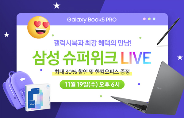 이번 방송에서는 최신 인텔 코어 울트라 루나레이크 프로세서와 WQXGA+ Dynamic AMOLED 2X 터치스크린을 탑재한 삼성 갤럭시북5 프로•프로360을 대상으로 다양한 혜택을 제공한다. 주요 혜택으로는 삼성슈퍼위크 할인 쿠폰을 포함한 최대 75만원 할인, 최대 12개월 무이자 할부, 한컴오피스 및 SSD 할인 / 무료업그레이드, 제휴 혜택 등의 사은품이 증정된다.