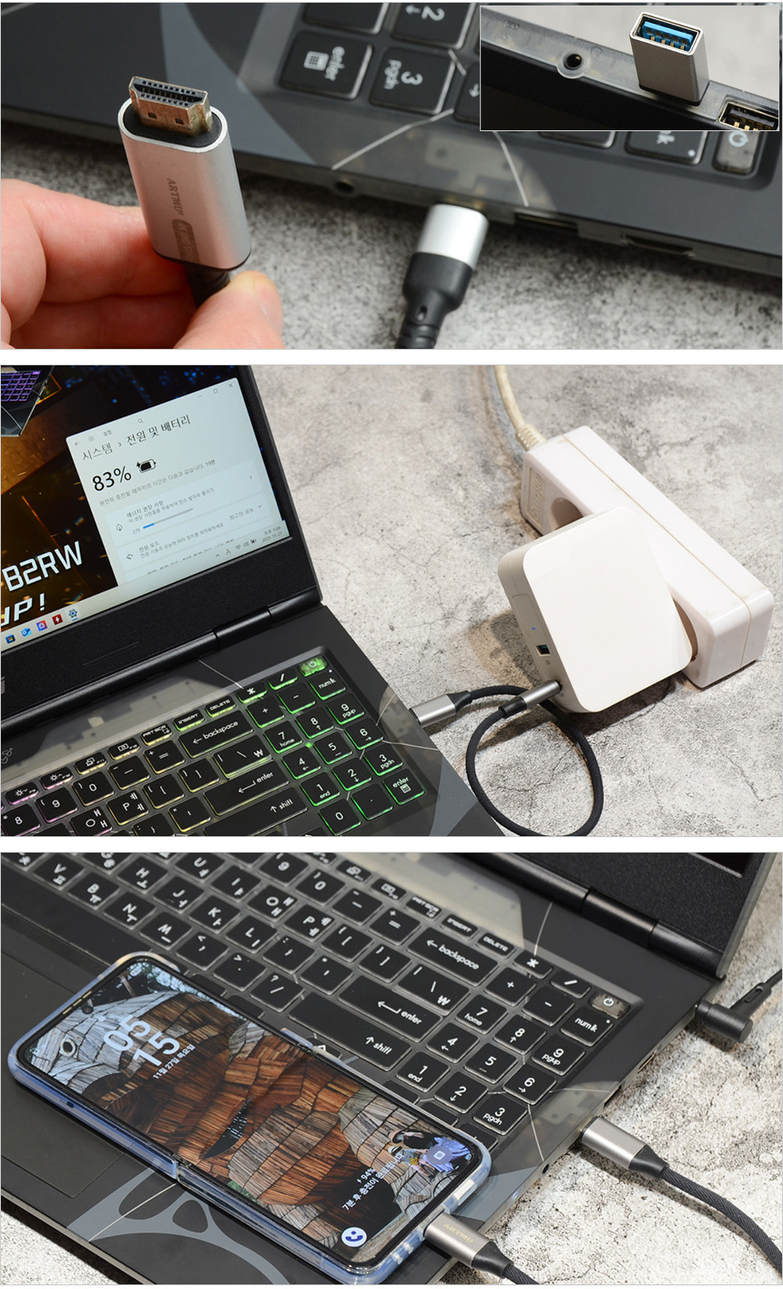 마지막으로 휴대성을 고려한 설계를 칭찬하고 싶다. 슬림 노트북 수준의 휴대성을 가진 모델은 아니지만 크기고 적당하며 스펙대비 무게도 가벼워 편하게 들고 다니며 사용할 수 있다. 배터리 사용시간도 긴 편이며 PD충전기 사용이 가능해 외부에서 전원 걱정없이 사용할 수 있다.