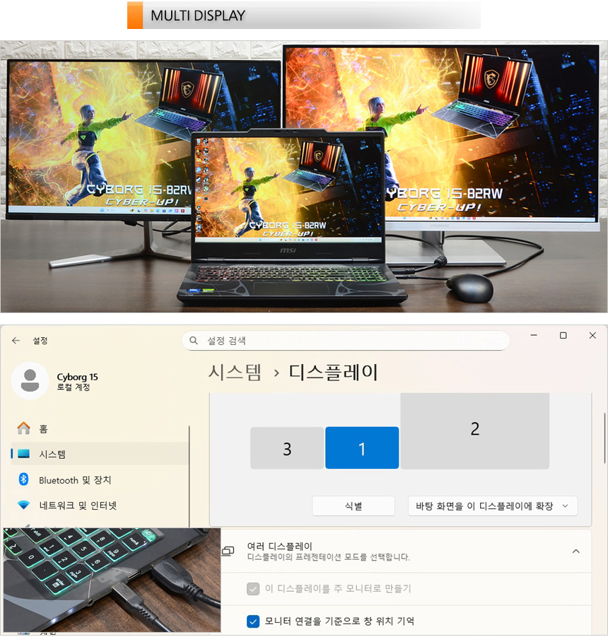HDMI 뿐만 아니라 C타입 단자도 영상 출력을 지원해 총 3개의 디스플레이를 사용할 수 있다. 4K@60Hz 도 가능해 게임은 물론 다중창 사용이 필수적인 업무나 학습용 으로도 유용하게 활용할 수 있다.