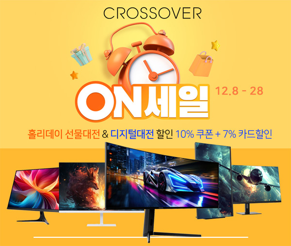 크로스오버는 자사의 인기 모니터 24종을 대상으로 12월 롯데온 홀리데이 & 디지털대전을 진행한다고 밝혔다.