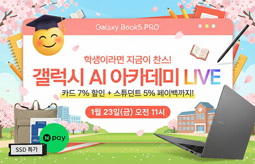 이번 라이브는 입학 및 신학기를 앞두고 고성능 AI 노트북 구매를 계획 중인 학생 및 학부모를 위해 기획됐다. 인텔 코어 울트라 2세대 프로세서를 탑재한 갤럭시북5 프로 시리즈의 '스튜던트 페이백' 프로모션을 집중 조명하며, 1월 31일까지 학생 인증 시 제공되는 최대 12% 할인, Npay 3만원 적립, 윈도우11 홈·SSD 특가 업그레이드, 노트북 액세서리 패키지, 한컴 오피스 2024 정품 라이선스를 포함한 총 8종 혜택 패키지를 집중 소개한다.