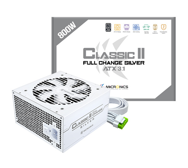 마이크로닉스는 ATX 3.1 규격과 PCIe 5.1을 지원하는 파워서플라이 ‘마이크로닉스 Classic II 풀체인지 800W 80PLUS 실버 ATX 3.1 화이트’를 출시했다.