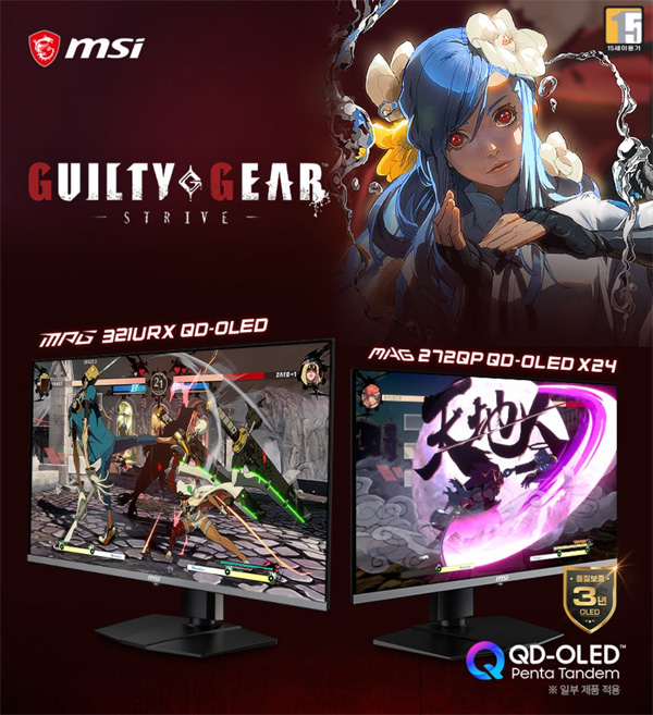 이번 프로모션은 MSI의 차세대 디스플레이 기술인 QD-OLED 패널이 적용된 게이밍 모니터의 압도적인 화질과 초고속 응답 성능을 보다 많은 소비자가 직접 체험할 수 있도록 기획됐다. 특히 ‘길티기어 -스트라이브- 블레이징 에디션’은 스타일리시한 그래픽과 박진감 넘치는 전투 연출로 글로벌 팬층을 확보한 대표 격투 게임으로, 고주사율과 빠른 응답속도를 지원하는 MSI QD-OLED 모니터와 뛰어난 시너지를 발휘하는 타이틀로 평가받고 있다.