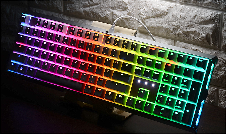 아름다운 조명 효과도 칭찬하고 싶다. 영문 이중사출 방식을 적용해 조명을 활성화 했을 때 구분감이 확연했으며 다양한 효과 지원은 물론 커스텀 기능도 제공해 자신만의 스타일로 키보드를 변신시킬 수 있다. 뿐만 아니라 사이드 부분에도 조명을 적용해 디자인 만족감을 한층 높였다.