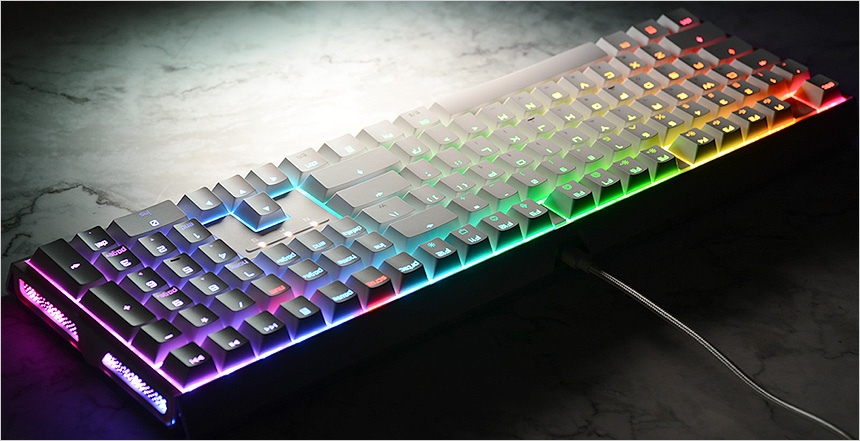 또한 단순히 스위치 위에 LED를 장착한 보급형 게이밍 키보드와 달리 다이아몬드 광택 표면의 스위치 커버를 적용하고 내부에 RGB LED를 장착해 훨씬 밝고 선명한 조명 효과를 경험할 수 있다. (조명효과를 위한 다양한 단축키를 제공하며 전용 S/W를 통해 조명을 설정할 수 있다.)