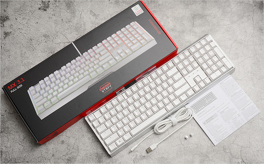 이번에 리뷰를 진행 할 체리 XTRFY MX 3.1 RGB MX2A 적축은 게임에 최적화된 최고급형 기계식 키보드로 최신 MX 2A 키스위치를 사용해 더 부드럽게 정확할 뿐만 아니라 안정적인 타이핑을 경험할 수 있다. 99.99% 골드 소재 접점부를 적용해 키보드의 반응 속도를 향상 시켰을 뿐만 아니라 소켓 돔 링 윤활공정을 포함한 풀윤활과 새로운 배럴 형태의 스프링을 탑재해 확연한 피드백을 선사하는 것은 물론 과격한 타이핑시에도 깔끔한 타건음을 선사한다.